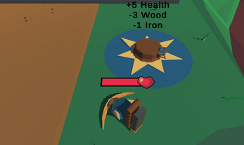 Stand near resources to gather and interact witch work benches to upgrade your gear to survive for at least 5 minutes to win.